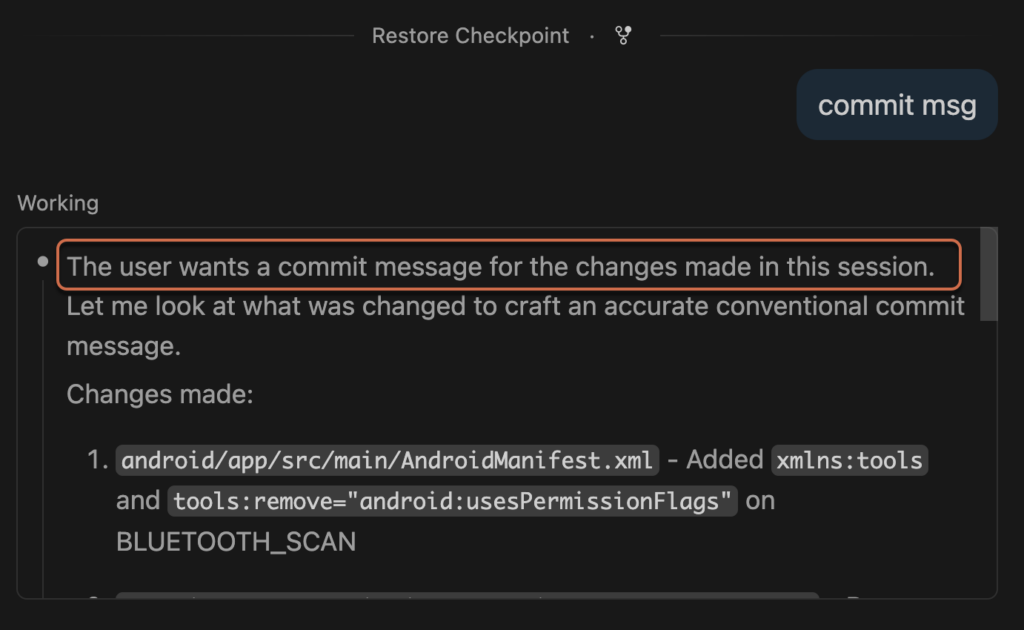 git add) to remind myself what I’ve already read & approved - Try to keep commits/PRs focused even with multiple agents making changes concurrently, ask the AI to write my commit message.